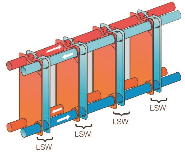 江蘇冰克LSW系列半焊板式換熱器在工作過程可以保證流道間全部的隔離,臨界媒質(zhì)在焊接密封后的流道中流動,將熱傳給另一側(cè)的普通媒介,沒有這種嚴(yán)格隔離設(shè)計,許多工業(yè)過程將無法實(shí)現(xiàn)。